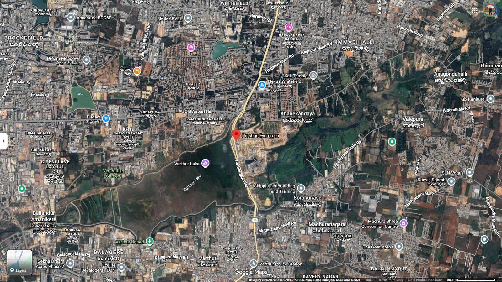 • Location: Whitefield–Varthur Road (SH-35), Varthur, East Bangalore (opposite Varthur Lake)